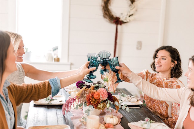 Cheers to the perfect feminine Friendsgiving party! What has been your favorite part of this party so far? We love this unique and muted color scheme!