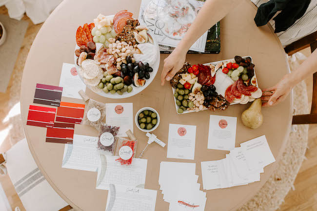 Get a playlist going {we love Wine Tasting Tracks on Spotify}, deck out your space to prepare, and set out the food and wine.
