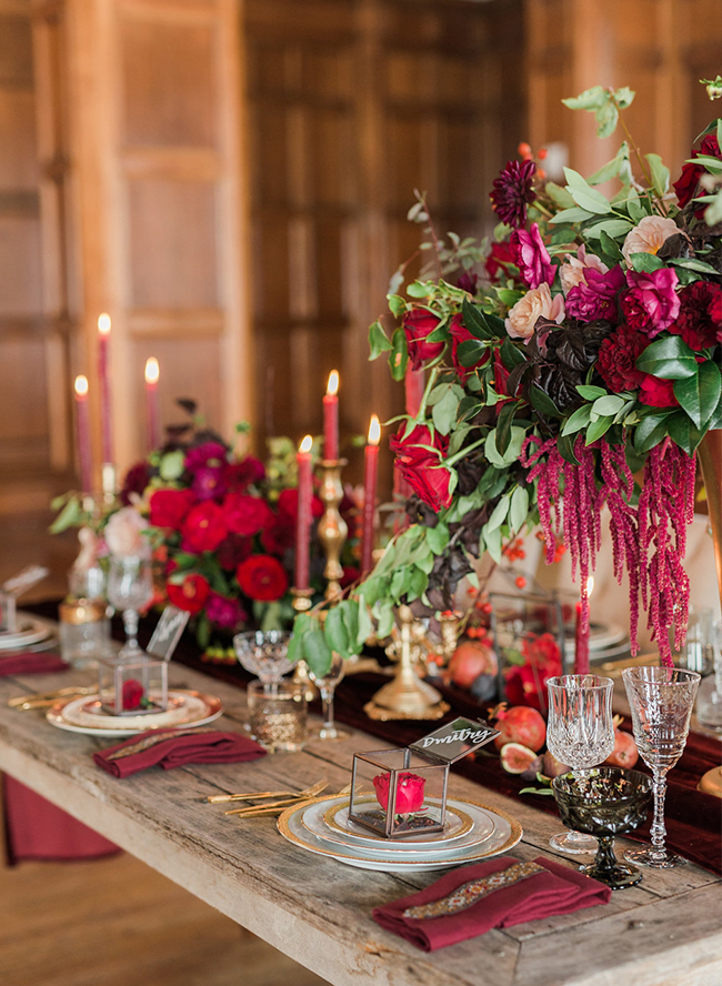Late fall and winter are the optimal time to pick a deep color palette. At the top of our list? Burgundy! It’s warm, rich, and not to mention, pretty popular, which enables you to find everything from bridesmaids dresses to smaller details in the shade. If you’re not on board yet, just wait until you see the beautiful burgundy wedding ideas below!