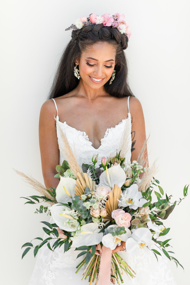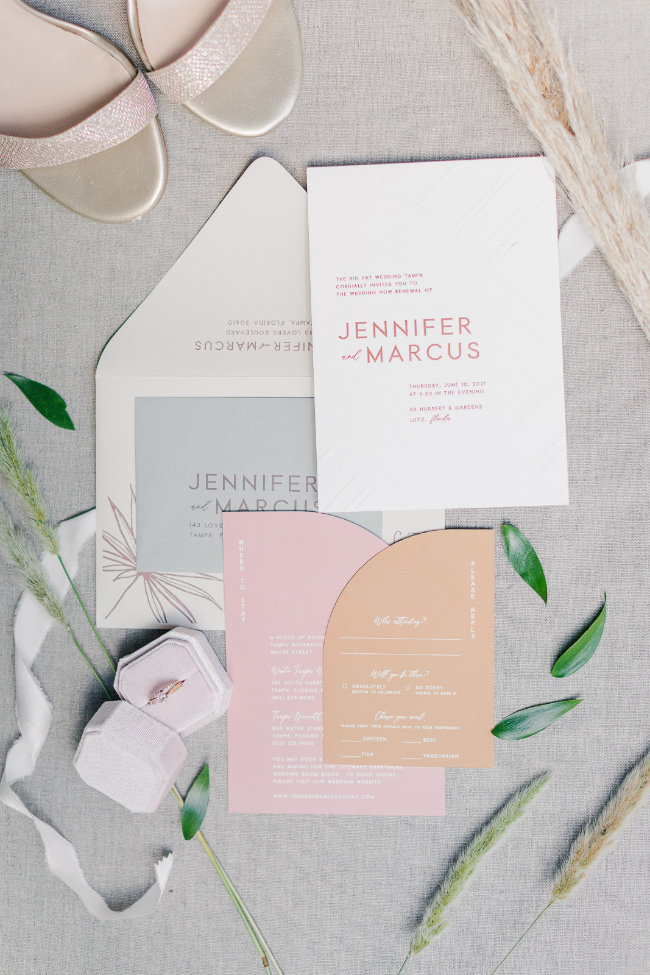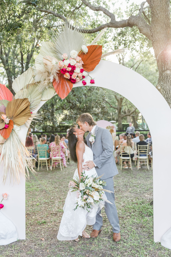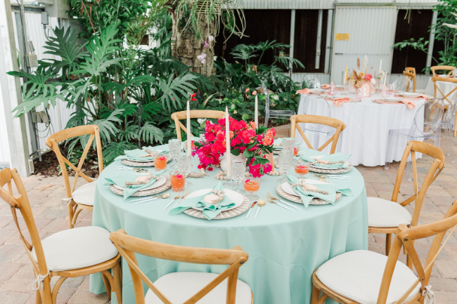 Tropical weddings have to be one of our favorite wedding themes. Who wouldn’t want to feel like they are on vacation while celebrating their love on the biggest days of their lives?! We know we would love it, and if you are looking for a domestic destination for your tropical wedding then Tampa, Florida is the best option. This unique tropical wedding featured not one but three stunning different tablescape options all as gorgeous as the last. But this didn’t surprise us because this wedding was actually a part of The Big Fake Wedding series that we are so happy to be partnered with. Scroll on to see every last stunning detail from this tropical wedding in Tampa!