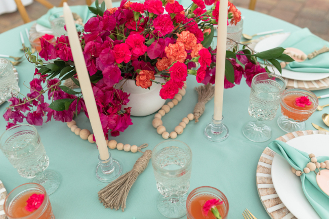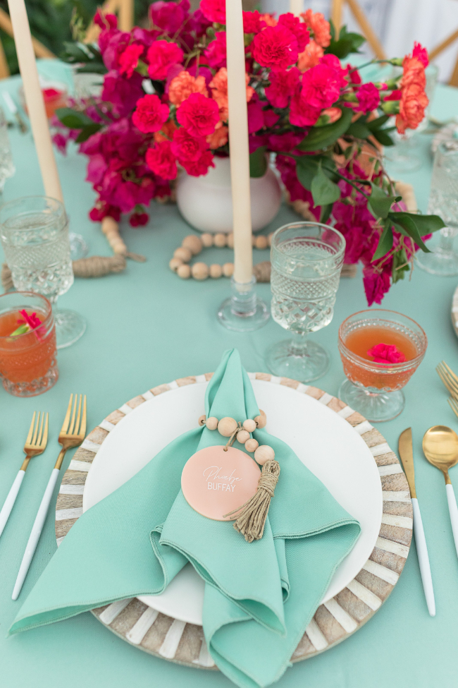The Big Fake Wedding Tampa was a creative ode to Palm Springs. With mojitos on tap, this event included colorful design details that incorporated the mid-century modern vibe that the “playground to the stars” is famous for. Each vendor brought their A-game with this design challenge, filling the Spanish-style estate with a vibrant array of elements. From gorgeous desserts and a champagne cart to the “dog of honor” and a live painter, The Big Fake Wedding Tampa was packed with creative vendors who made the day incredibly special.