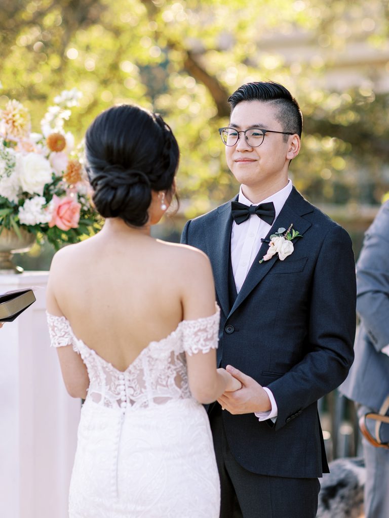 One unique touch to their wedding was how they incorporated their dogs. Bride Karlie stated, “We both just had our first dog when we met, so for our first date, we came out for a play date for our dogs.” With a nod to their first date, Karlie & Michael incorporated their fur babies in their actual wedding party! Their dogs stood with their wedding party at the front of the ceremony. How sweet! Congrats to Karlie & Michael Zheng!”