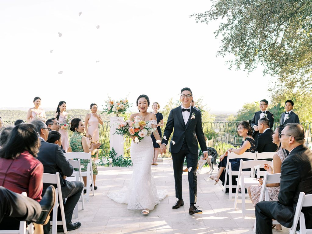 “Karlie and Michael envisioned a romantic and sweet wedding day with blush and coral florals and details. Stunning pink blooms from Unforgettable Floral surrounded Villa Antonia on their wedding day. Their venue was like a little slice of Italy in the middle of the Texas Hill Country.”