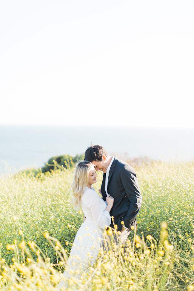 - Oceanfront Engagement Photos Featuring Wildflowers