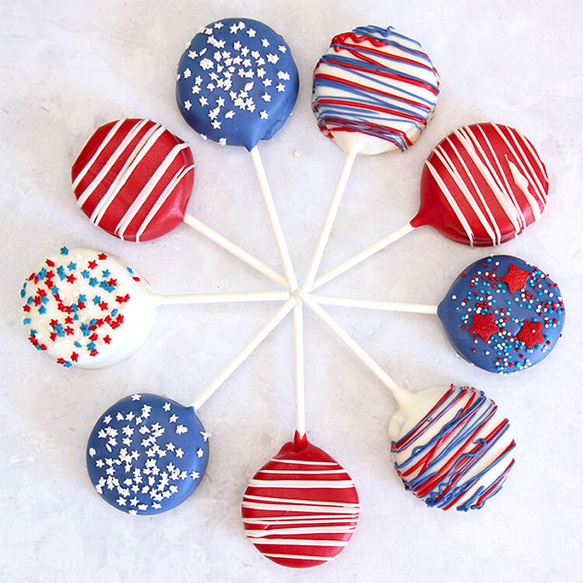 We can’t lie, we’re drooling a little over these oreo cake pops! Plus, aren’t they cute? These are the perfect dessert to show up with at your 4th of July celebration – you will be the guest of honor, no doubt!