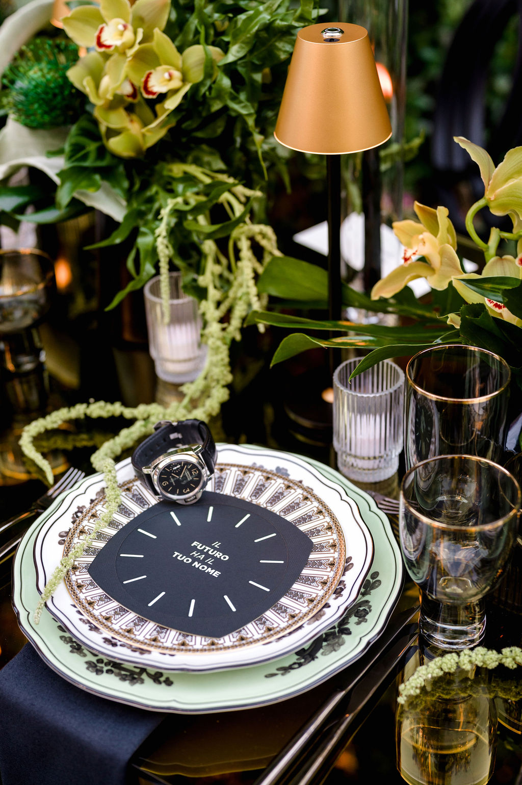 From stacked plates and custom menus to glowing gold lamps, black taper candles, and lush florals, every layer was intentionally designed. As the evening unfolded, the table became a living, breathing part of this celebration.