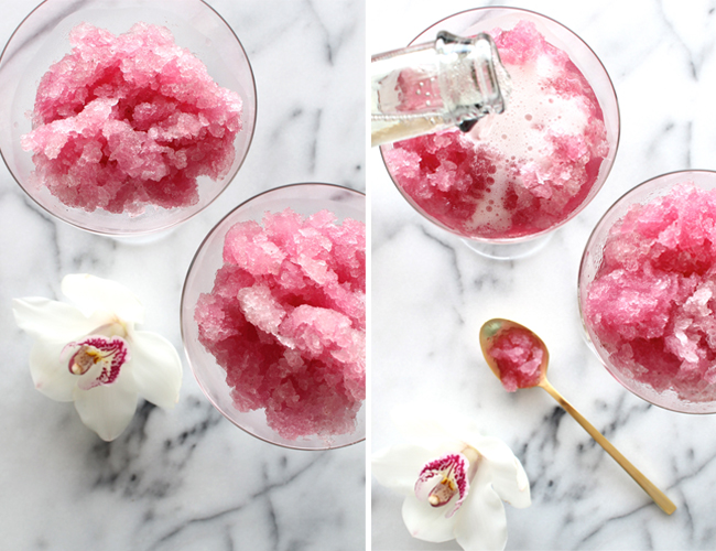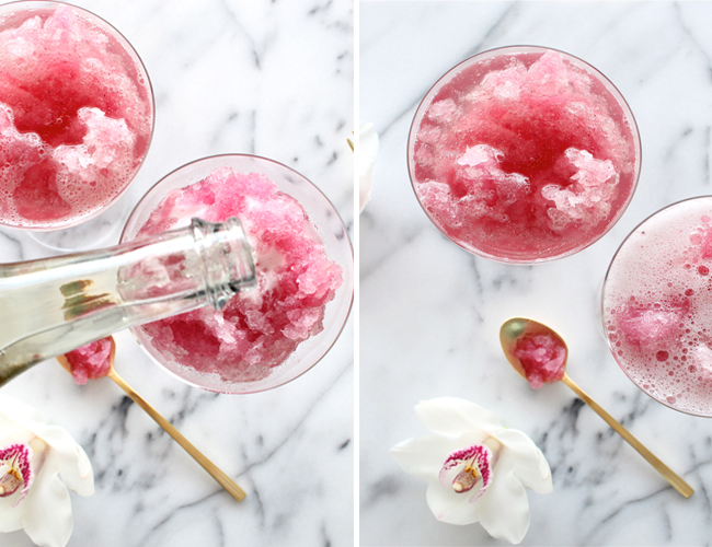 4) Scoop granita mixture into glasses (we used champagne coups) and top with ONEHOPE Sparkling wine. Cheers!