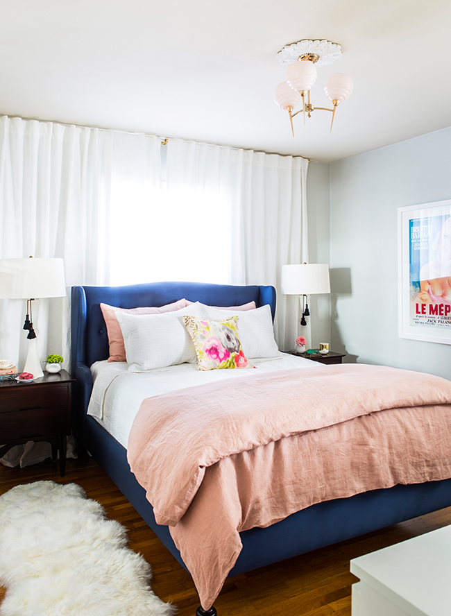 For the spring season in particular, I love incorporating pillows in soft floral patterns or saturated solids in pastels (this year I’m all about robin’s egg blue and coral) on my bed, sofa and side chairs. Add them in where they make the most sense in your home’s existing décor, and when the season is through and you’re ready to move on, store them until next year!