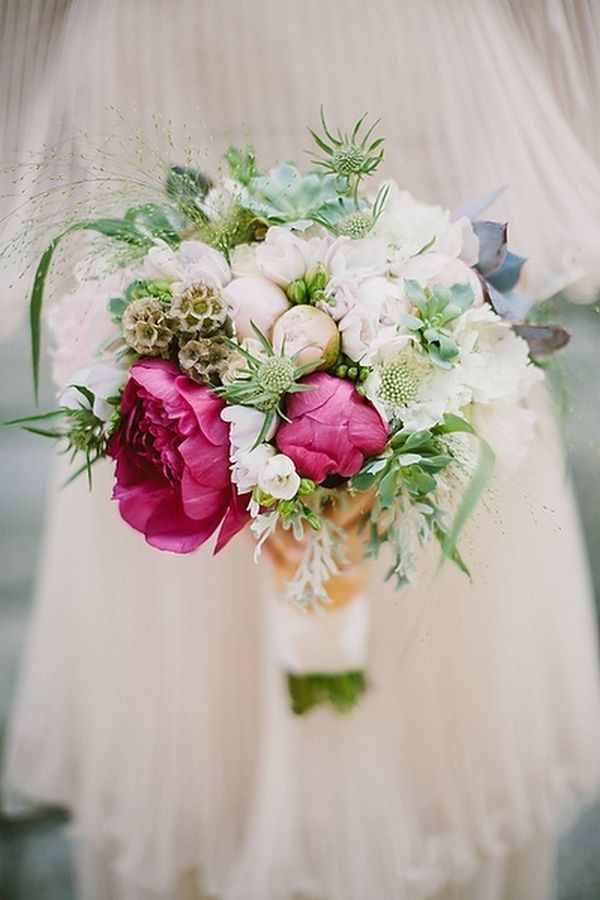Favorite Bouquet: Peonies, scabiosa pods & succulents from this post {source}