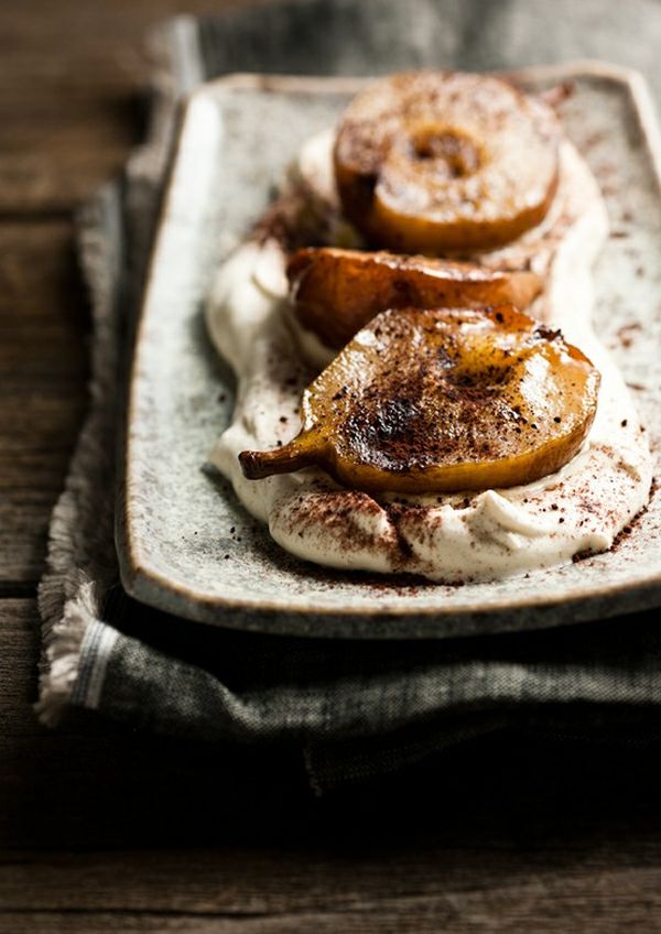 Favorite Recipe to Try: Roasted pears + espresso mascarpone cream {source}