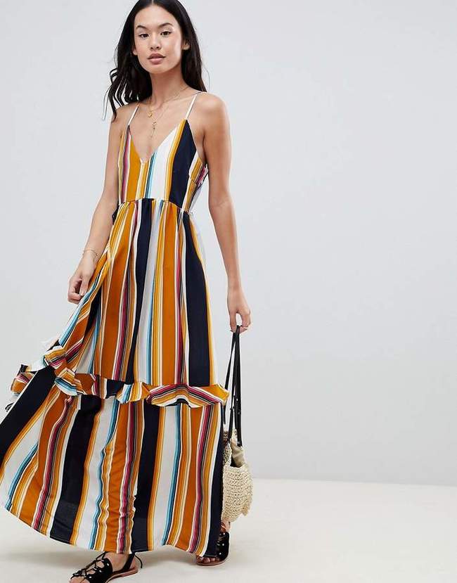 Boohoo Lace Up Back Stripe Ruffle Maxi Dress, $44