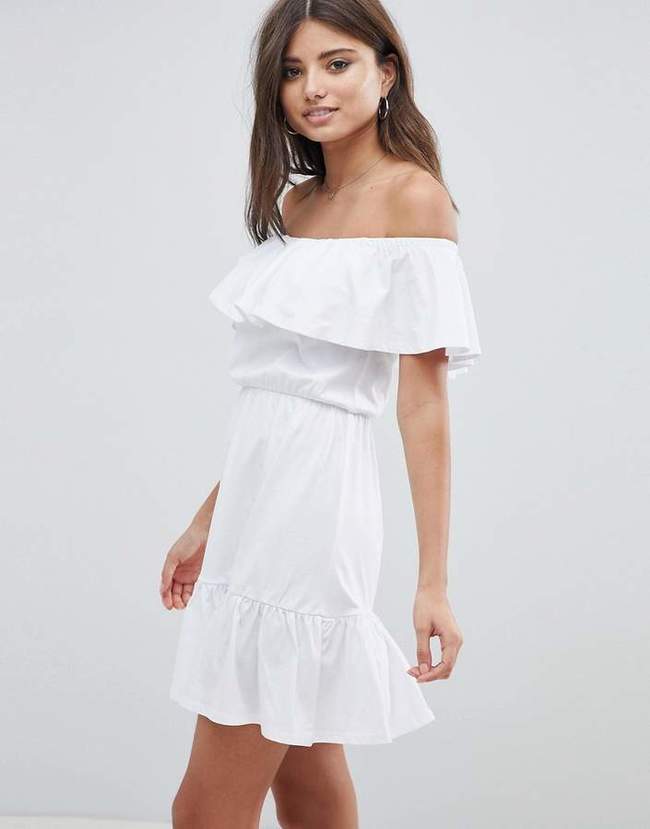 ASOS DESIGN Off Shoulder Sundress With Tiered Skirt, $24