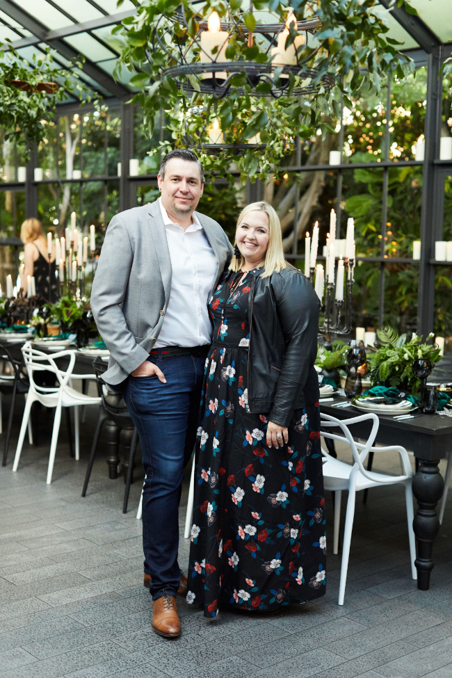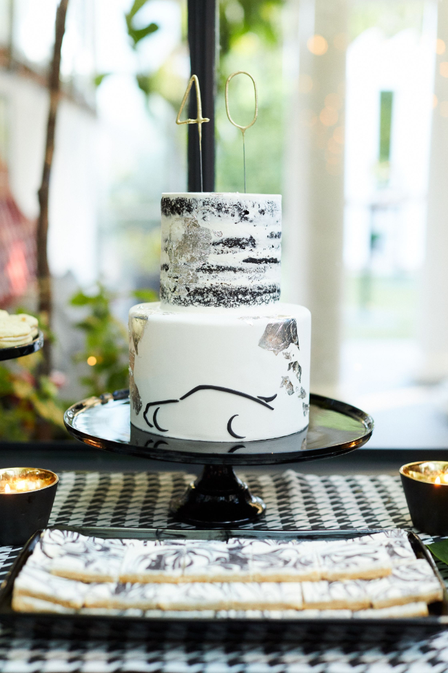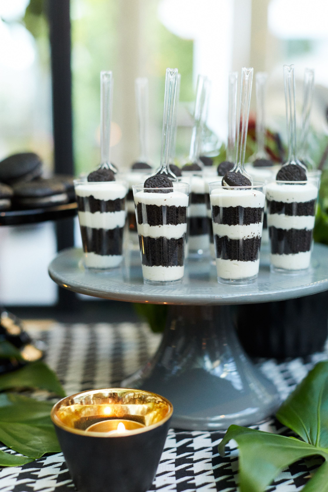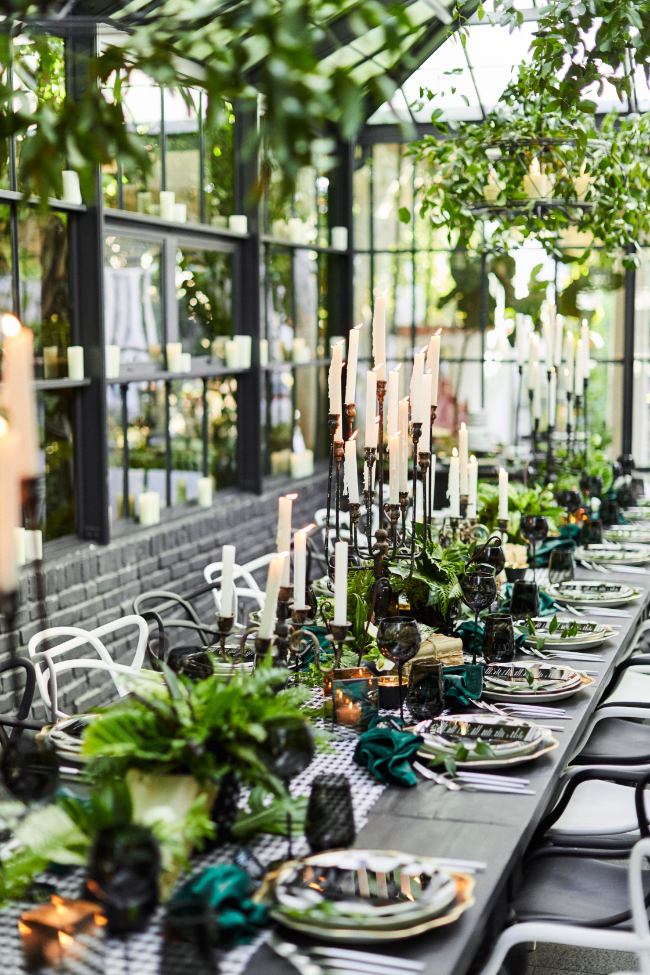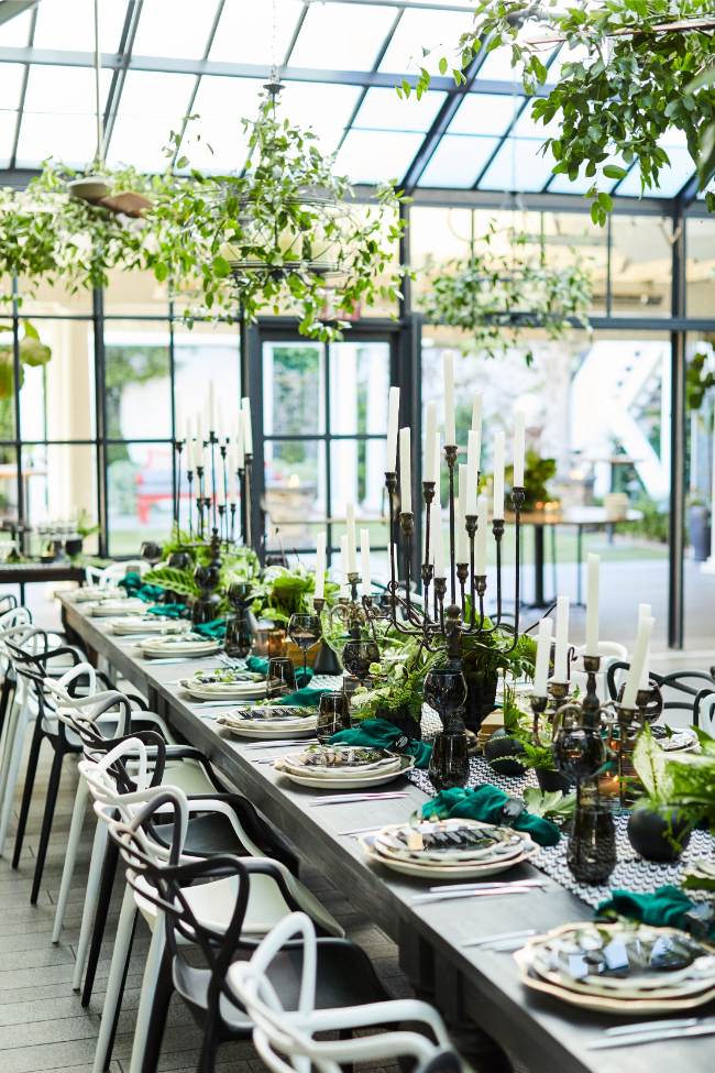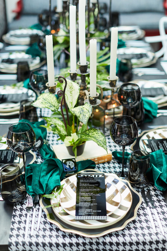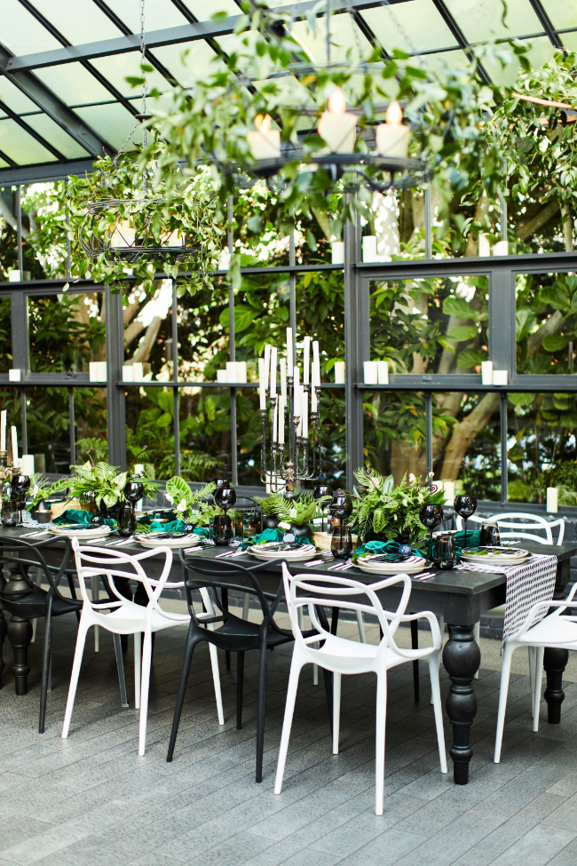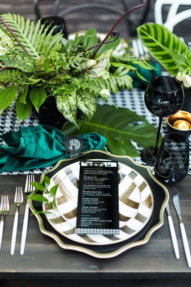This intimate 40th birthday party took place in a greenhouse, and we love how the decor pulled from the venue for inspiration. Chic black details complemented jungle-tones of green, and a mix of patterns combined with acrylic details added a modern touch to each place setting. Captured to perfection by the amazing Brandon Kidd Photography, this modern greenhouse birthday party is the 40th birthday every man dreams about!