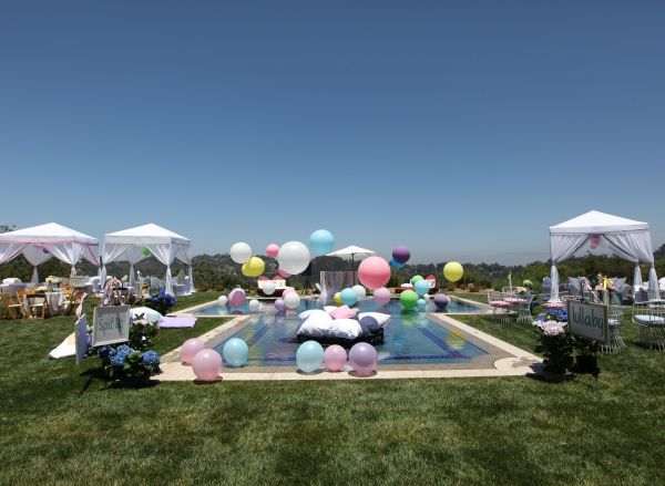 Giuliana and Bill Rancic’s Pink and Blue Baby Shower revealed It’s a BOY! Since these two wanted to keep the gender of their baby a secret for this gorgeous baby shower, there were so many pink and blue elements that definitely kept their guests guessing. We love a good gender reveal and this one tops the cake! Mindy Weiss did a fabulous job designing and coordinating the event… how amazing does that pool look?! Between the flowy, white tents and massive balloons, we can’t decide which part is our favorite!