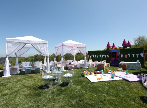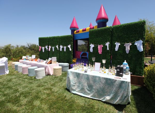 Giuliana and Bill shared the surprise after cutting into their tiered cake by Cupcakes Couture of Manhattan Beach, revealing a blue interior!! We can’t help but smile when we see them opening the huge box full of blue balloons… seriously, this is just the cutest idea ever! Guests enjoyed OneHope Wine, visited different activity stations and soaked up some sun… it was the perfect day for a baby shower!