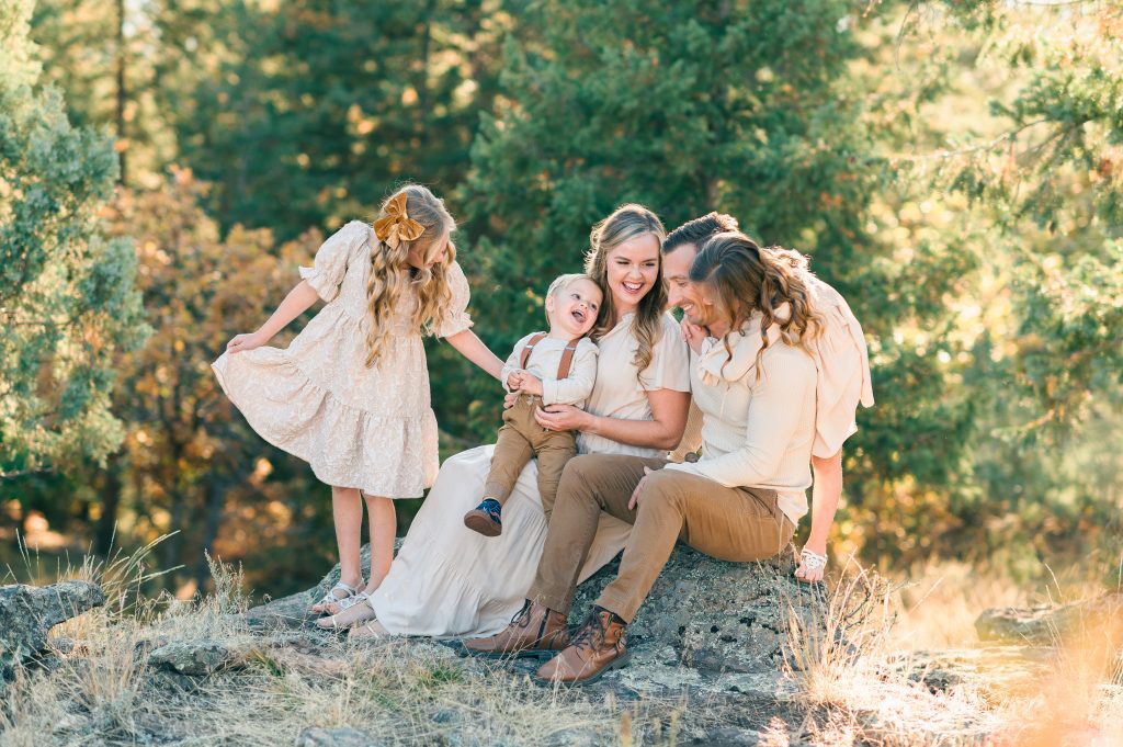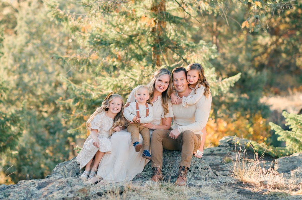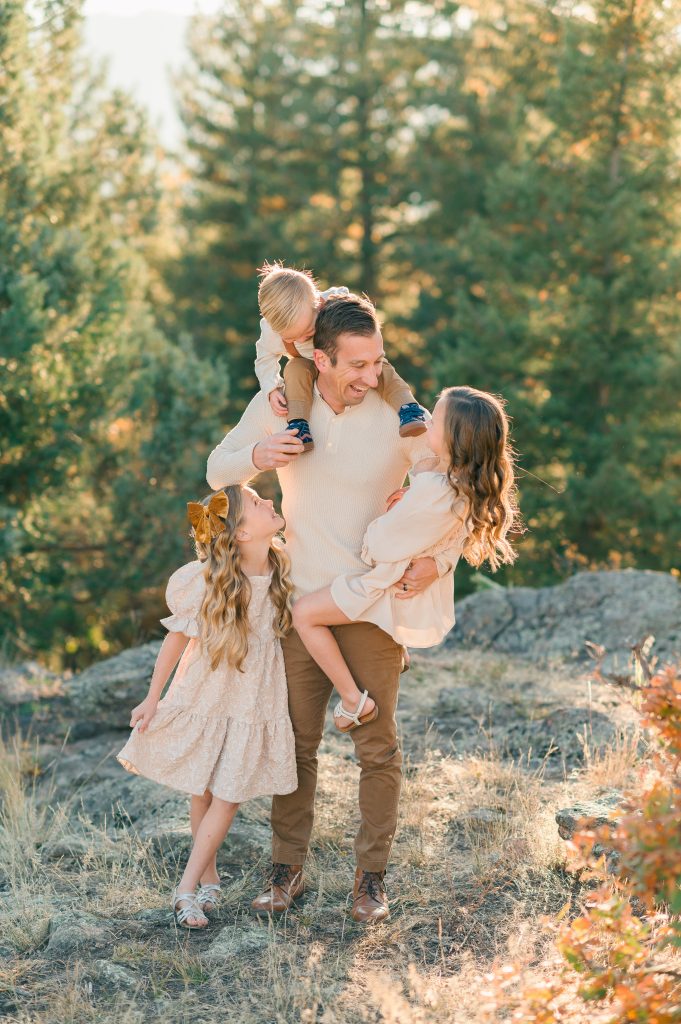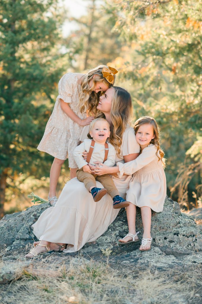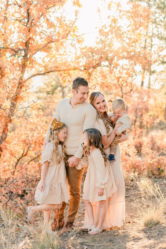 “This beautiful family wanted their annual portraits captured up in the mountains of Colorado. Katy, the mom, worked for months to pull together their cream colored outfits. Between lots of sunshine and smiles, their sunset family photo shoot session was a beautiful evening to capture, just outside of Denver, Colorado.”