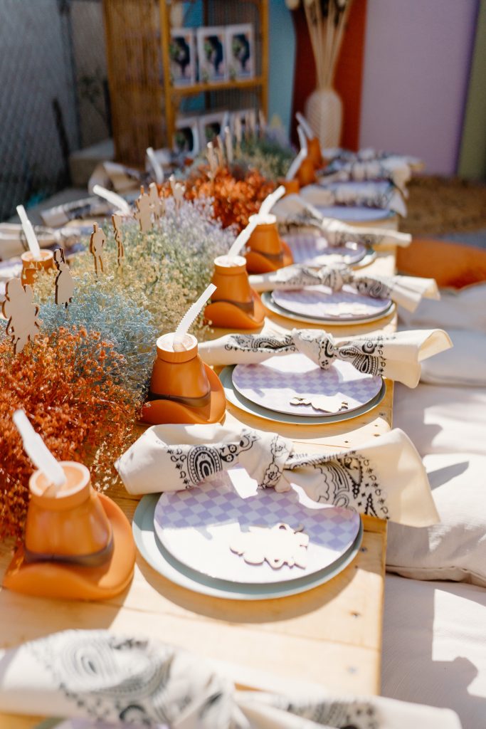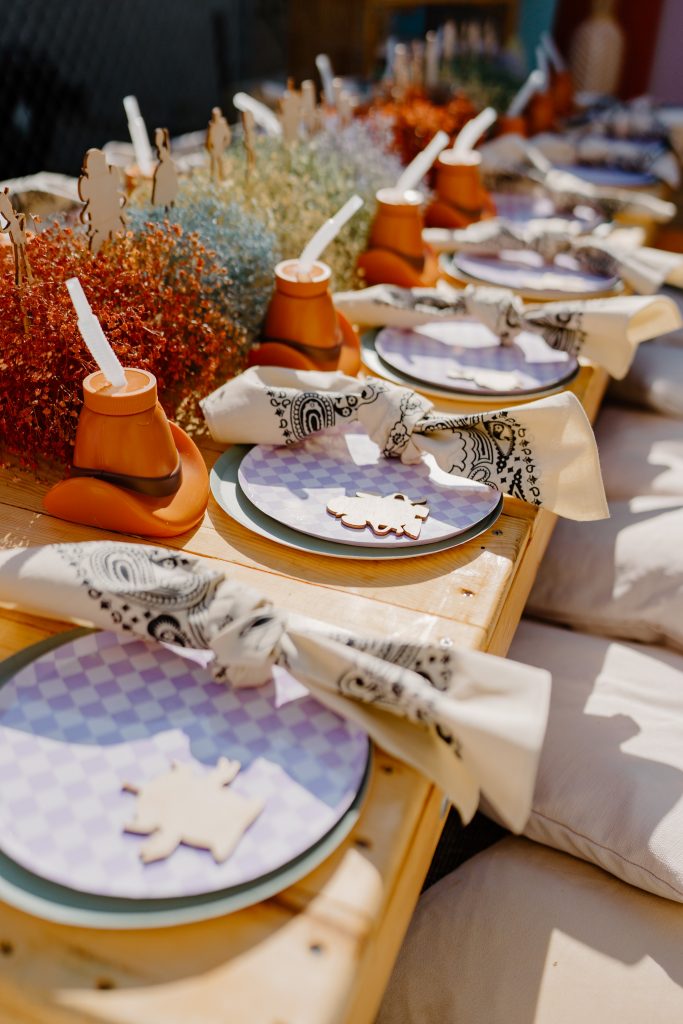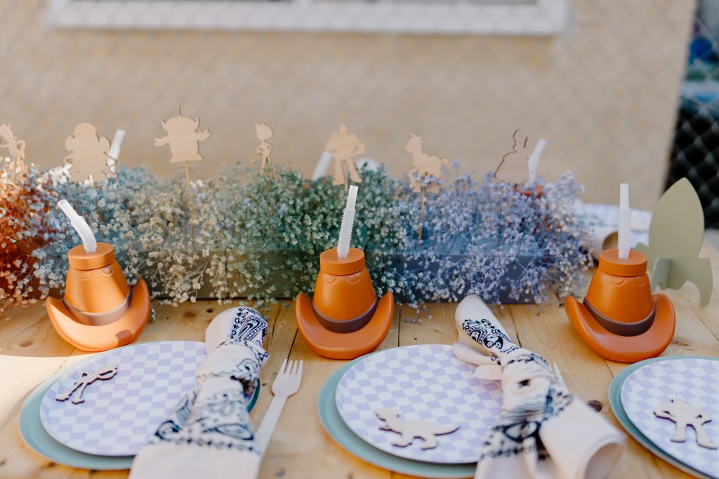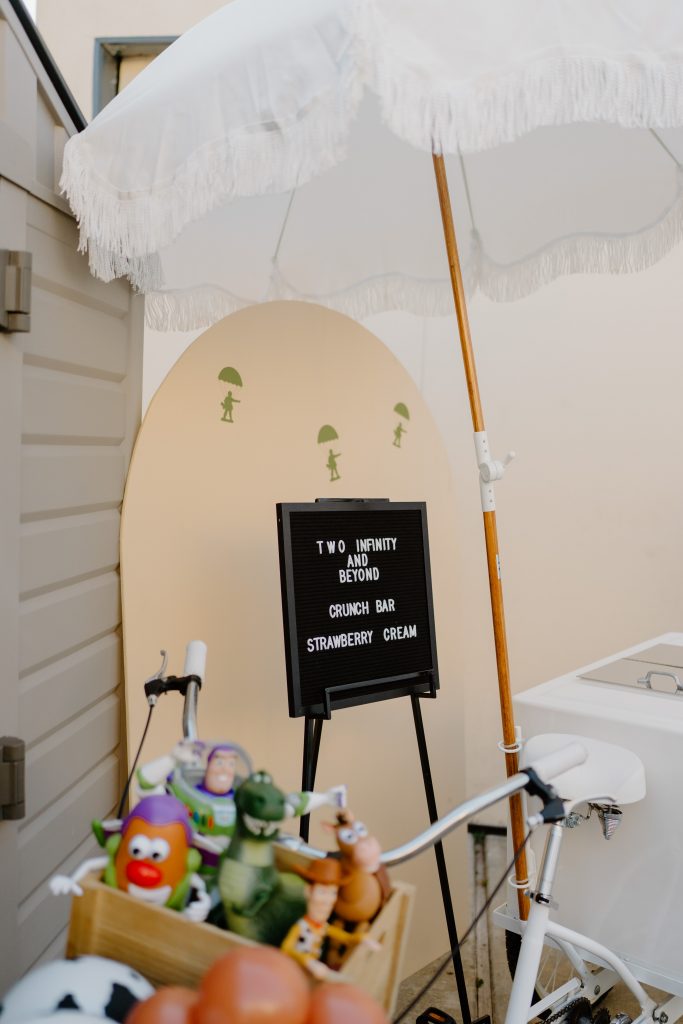 “Hendrix is the rootinest TWOtinest cowboy in the wild Wild West and he went TWO infinity and beyond! My sweet boy is somehow two already, and I wanted to create the most magical Toy Story party for him. The kids table was a perfect mix of buzz lightyear and woody with wooden silhouettes of every character. As much as I love the traditional colors of Toy Story, the muted color scheme was absolutely beautiful. Every detail of this party was so fun to create and watching it come to life was so magical.”