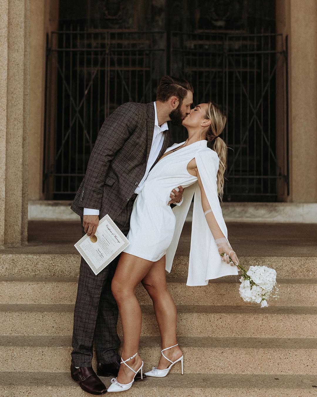 “Celebrate with a simple date night; no seating chart, no timeline, just the two of you soaking it all in,” says Sakhno. “Order your favorite takeout, go for a ride to nowhere, soak in the sun, open that good bottle of wine, and toast to the start of forever.”