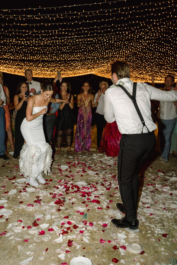 For the reception, we went back to Villa Sylva. The property sits on 10 acres, so guests were able to walk around and explore the grounds before dinner. Greek dancing at the reception was another highlight of the night. The thing I was most excited to do for our wedding, was break plates! Its a tradition commonly done during Greek celebrations and it was an unreal experience.”