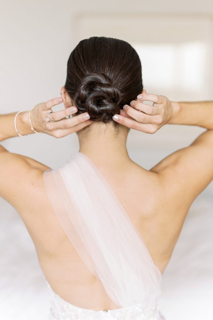 This black tie chic foliage wedding is something out of a dream! We love unique venues, but even more, when they become transformed just by moving a few things around. In this case, the reception space was hidden beautifully behind a bamboo wall during the ceremony. The baby’s breath, archways and subtle pink flowers throughout this entire wedding venue depicts romance and warmth.