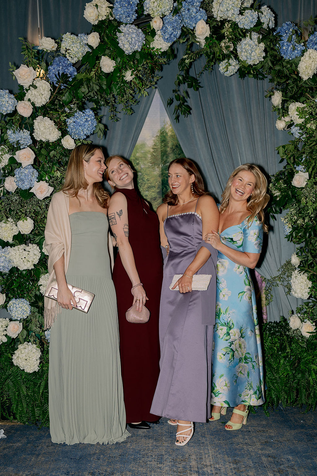 Carrying on into the evening, the reception had that kind of glow you notice right away; the soft candlelight, the chandeliers overhead, and these beautifully layered tables dressed in periwinkle and white florals that felt fresh but still classic. It all came together in a way that felt elevated without trying too hard, like a really good dinner party where every detail just happens to be spot on. Between the delicate linens, gold flatware, and glassware catching the light, there was so much to take in, but it still felt warm and easy to settle into.