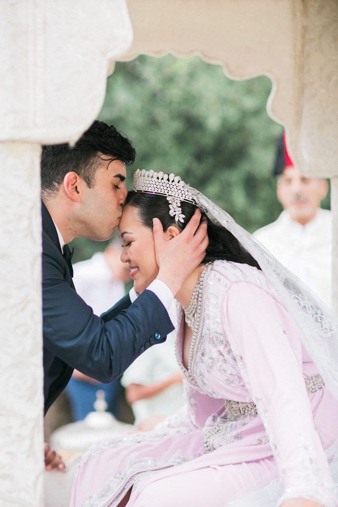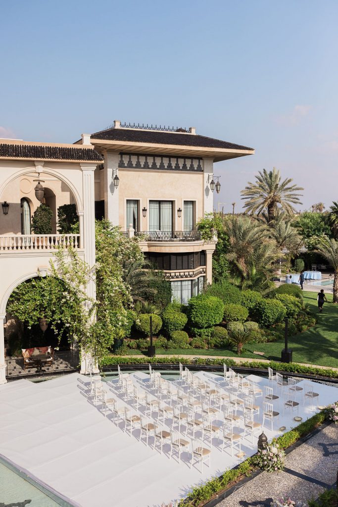 “The couple envisioned an ultra-romantic classic wedding with a mix of American and Moroccan cultures – hence their romantic mixed culture Moroccan wedding vibe. They also visualized luxurious details, lush flowers and a timeless feel. They relied on the competent and talented wedding planning services of La Perle Events and Party Maroc to fulfill their dreams. The wedding venue choice was likewise exquisite: the top-notch, Palais Ronsard.”