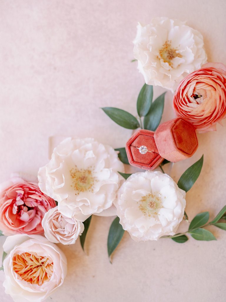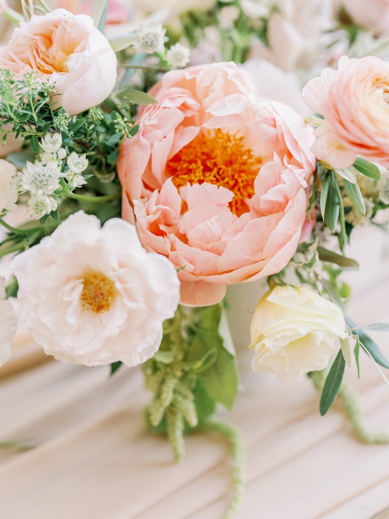 “Wanting to create a great Italian Al Fresco wedding, we decided that Sunstone Villa in Santa Ynez, California, was the perfect house for our styled shoot. With accents of fresh coral and white floral pieces, our vision was to create stations that were both welcoming and special. Our floral arrangements were created with : Astromerias, Amaranthus, Chrysanthemums, Peonies, Ranunculus, Sweet Peas, Carnations, and Roses.