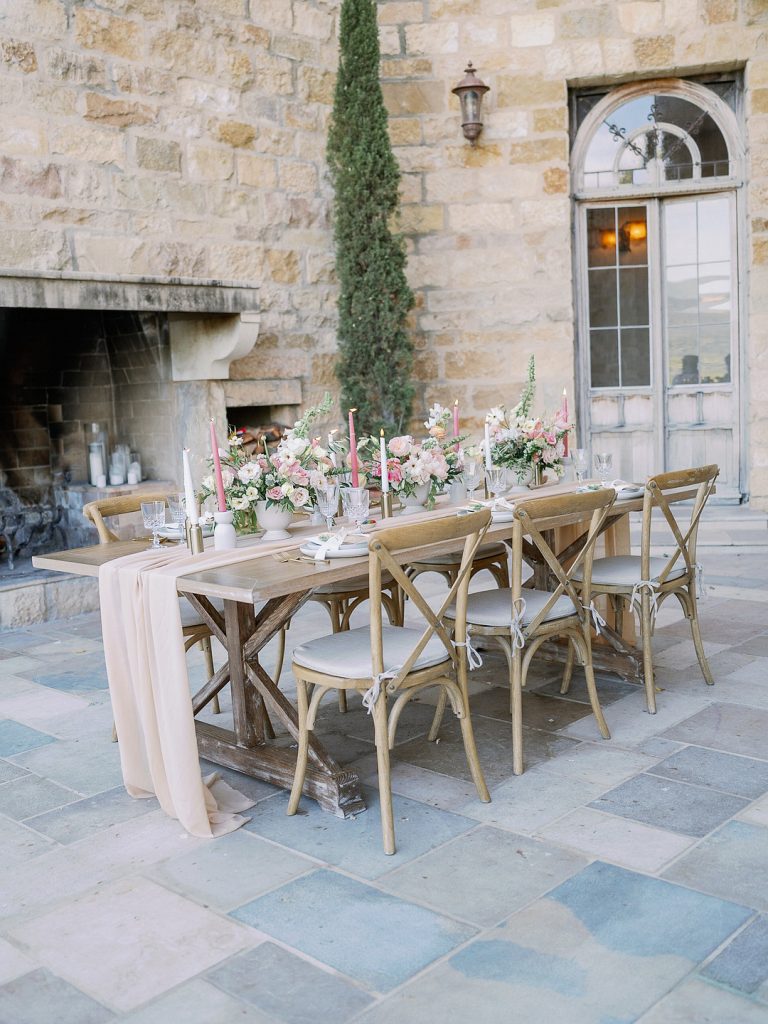 Imagine being transported to Italy, but less than an hour from the Pacific Ocean. This touch of Tuscany venue brings every guest to Europe at first glance. We love a unique wedding and this one has all the right touches. From the combination of different florals, to the European style venue, to the bride’s dress, we are in awe with all the details. Styled shoots like this allow us to envision ourselves getting married in that space or become inspired by the details included. The combination of lace, blush and elegant florals in this one is sure inspire those who want something a little more untraditional.