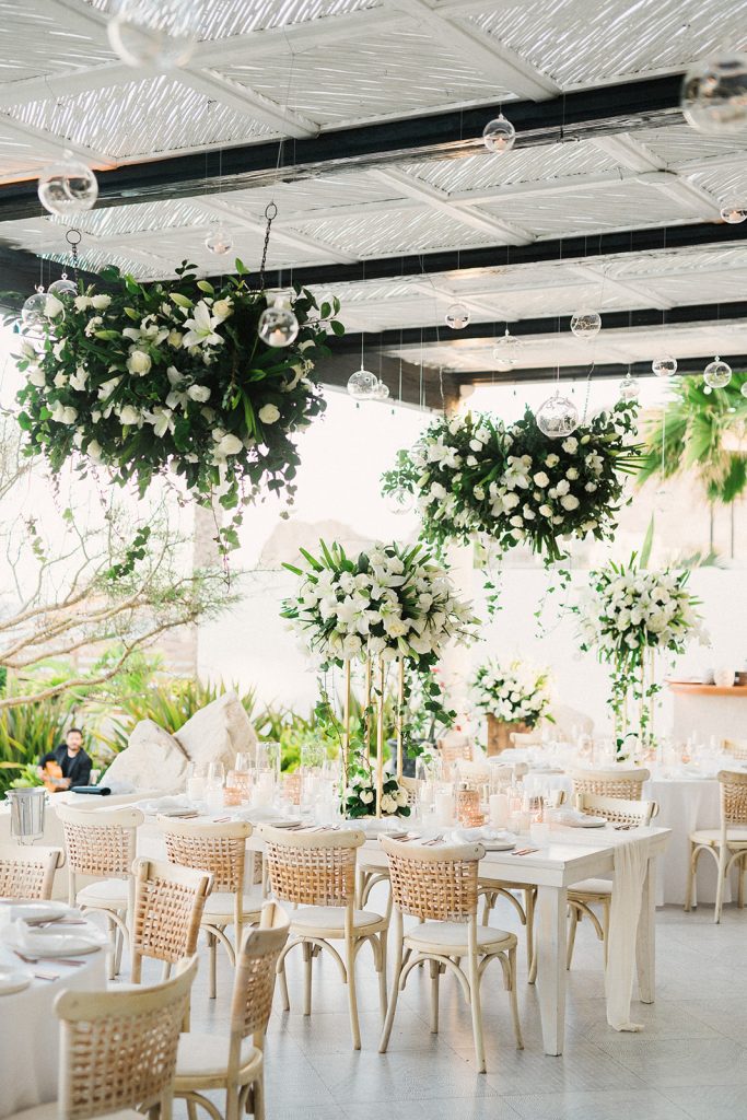 The venue was decorated with stunning white and green floral arrangements, created by the expert florists at Del Cabo Floral Design. The flowers had an elegance to them, and arranged throughout the ceremony and reception. The florals created a beautiful and romantic atmosphere that perfectly complimented the breathtaking surroundings of the resort.”