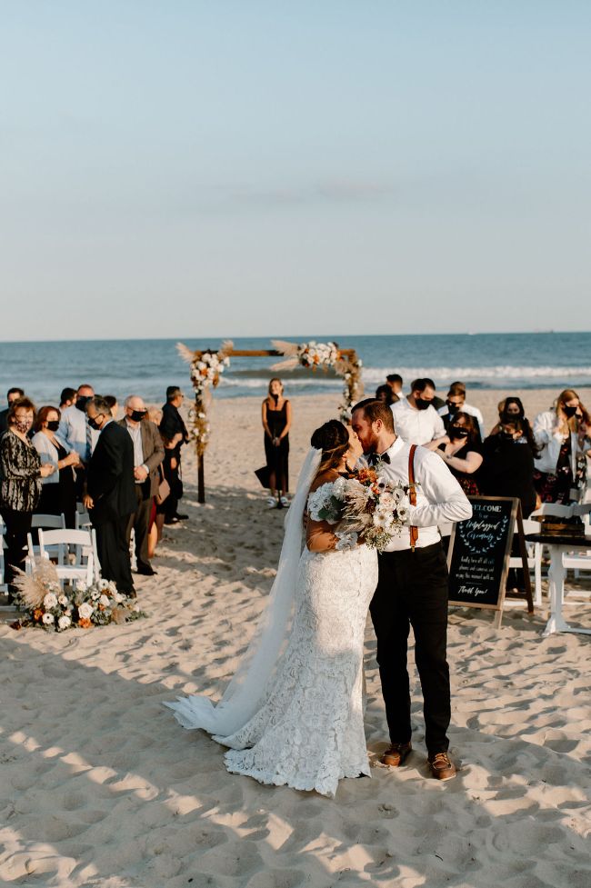 We know that the title of boho glam beachfront wedding most likely grabbed your attention. And we are here to say that the content is better than you could ever expect because it features a covid couple so clearly in love. These two love birds decided to shift their wedding day plans to move forward with their initial date. Their date fell right in the peak of the COVID pandemic but that didn’t stop them. They threw a party for the ages on the beaches they had their first date. And boy oh boy this party did not disappoint. Every chic, glam, and boho detail is worth documenting.