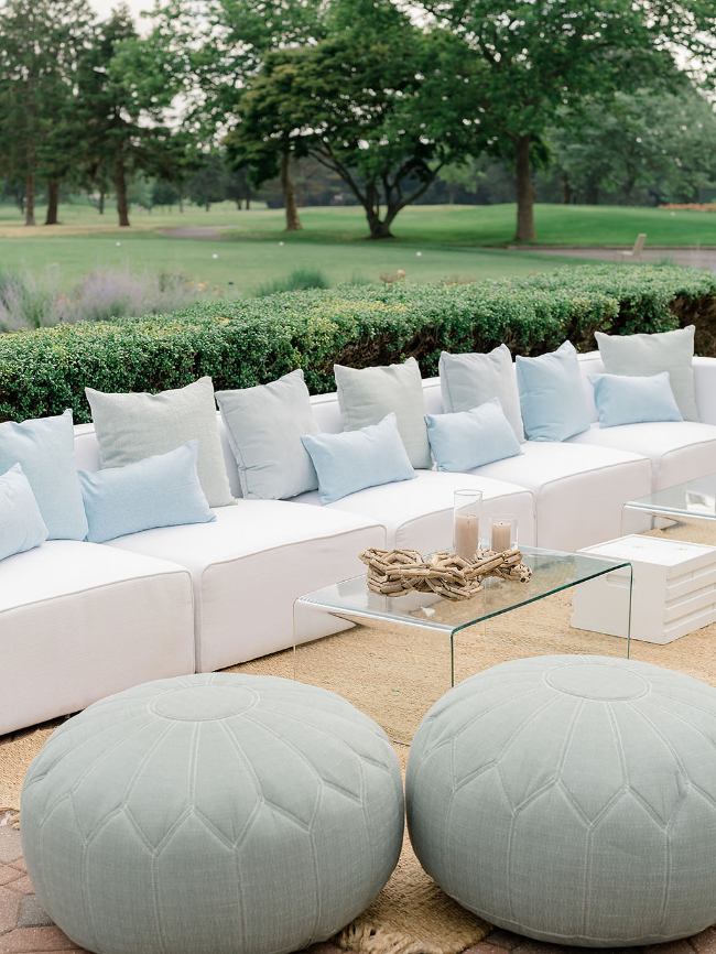 When we say we’ve never seen a more extravagant wedding, we mean it. Emily & Evan’s wedding left us speechless, but now we can’t stop talking about it! The vision they had was coastal, modern, and classic, with a touch of bohemian. They went with a color palette of blues and greens, paired with neutrals of browns, creams, & whites in the decor. It was inspired by the Jersey Shore and their overall love of the ocean.