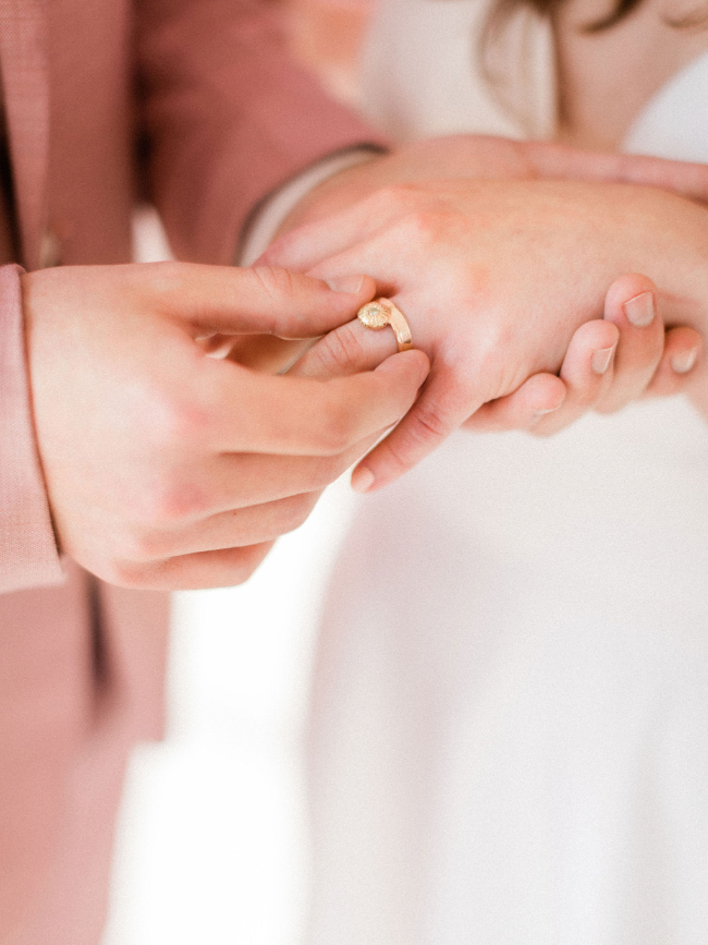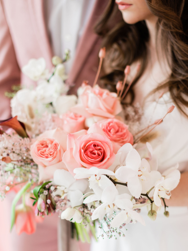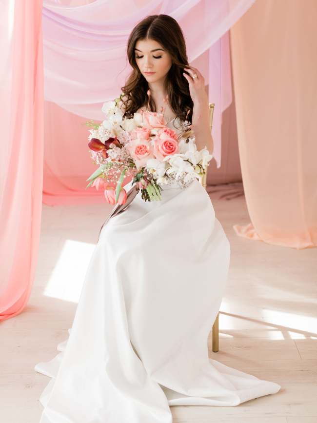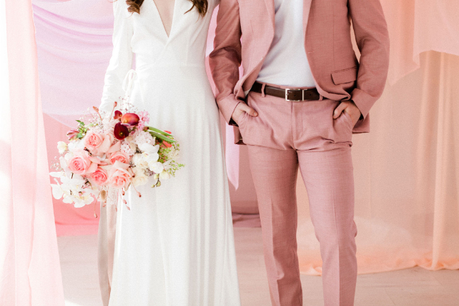 The ice cream inspired hues brought a youthfulness to the overall sense when selecting the tones and texture in the fabrics. We created this scene within a studio where we could work with the fabric in all its delight, however this look could certainly be achieved in any Art Gallery, or even outdoor setting, to create a modern and exciting backdrop for our couples ceremony. The studio setting enabled us to create an intimate feel allowing us to focus on connection.
