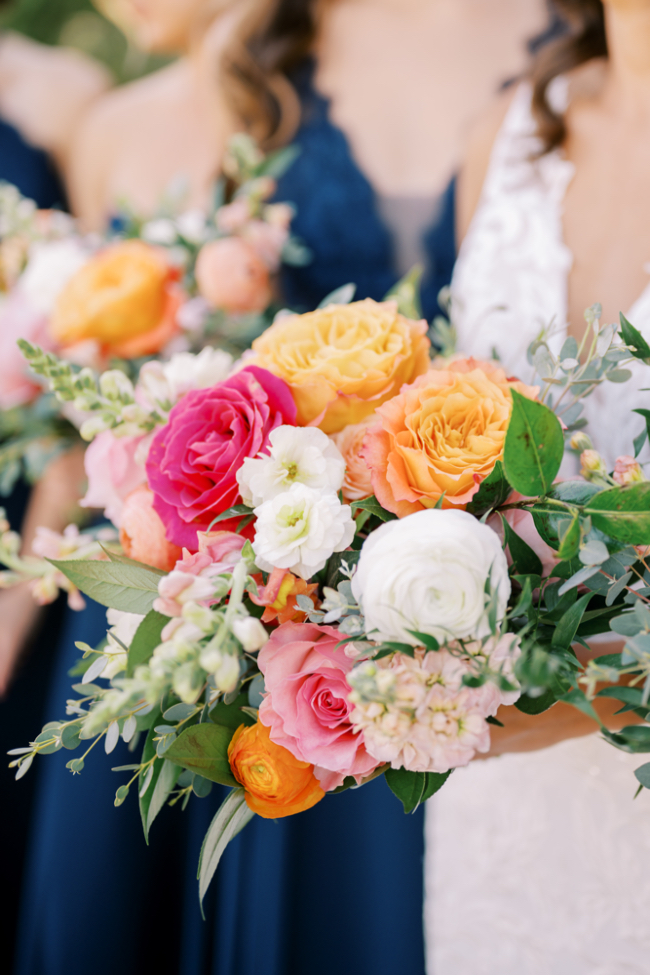 As summer goes into full swing, we are constantly in awe of the use of color! We needed this wedding on a private ranch this season. Fresh flowers transform the event, from the beautiful florals in the bride’s bouquet to the ceremony arch. Don’t get us started on the stationery set! Every detail is so well-executed. The use of a white tent makes those colors stand out even more. Even the cake has that artistic flair that brings in the same colors in such a fun way. These vendors created a spectacular event that makes us excited for summertime!