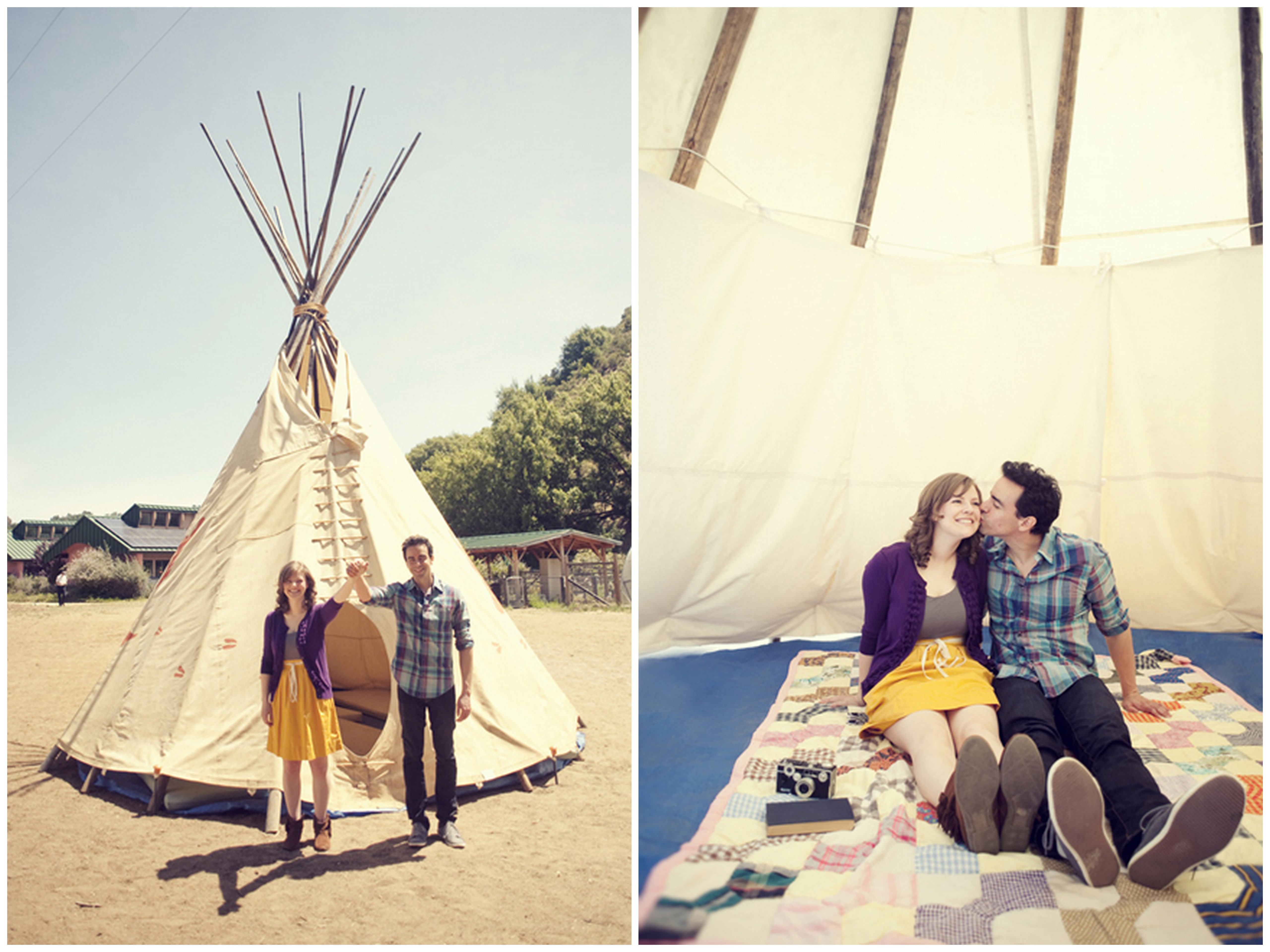 I love this farmhouse engagement shoot, sent over to us by Delbarr Moradi! Josh and Hannah are such a fun, and creative couple! The both work at Dreamworks pictures and met while working on the movie Megamind! How fun is that?! I love this outdoor scenic location and the TeePee is super cute! Here’s what Hannah had to say about the day: