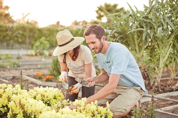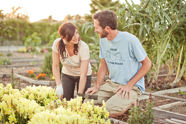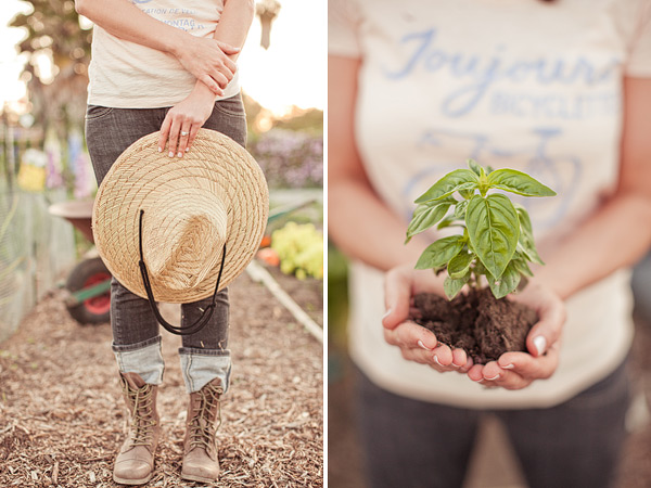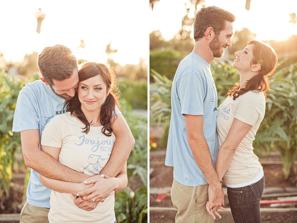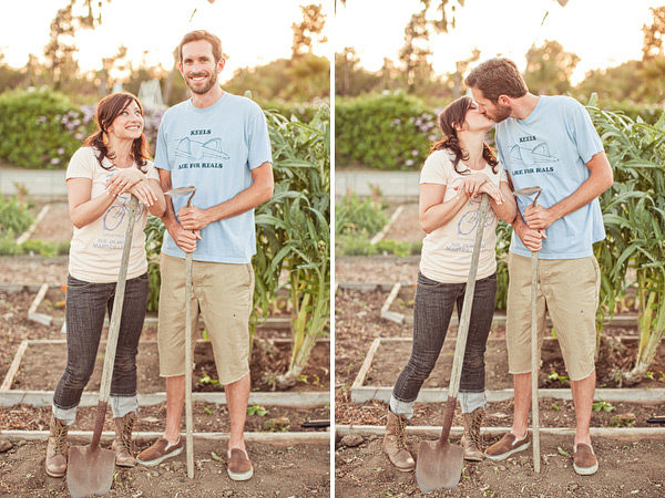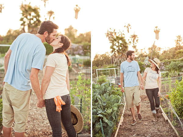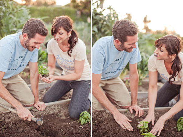 I love an engagement session with minimal props, just a couple in love like this gardening engagement shoot. It’s even more special when a bride and groom to be is photographed being just themselves, doing what they enjoy. Melissa and John met at a teachers night in Long Beach and hit it off immediately! They  love traveling together and being in the outdoors. And my favorite part?? John owns a garden plot in Long Beach, which served as the perfect spot to take their engagement pictures! Dave Richards Photography captured it all perfectly! Makes me want my own herb plot too. So Inspired!