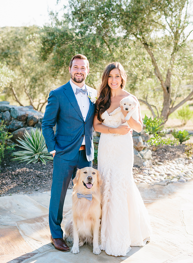 If you are dog lovers like us, it’s impossible for you to imagine getting married in front of your closest friends and family without your best furry friend by your side. And dogs are family too! Plus, they make the CUTEST ring bearers and flower girls (sorry kids). We’ve rounded up some of our favorite ways couples have included their dogs on their wedding day for you! Hopefully, you can gather some inspiration on how to make your pup part of your wedding – or at least swoon over all the adorable photos ;). Enjoy!