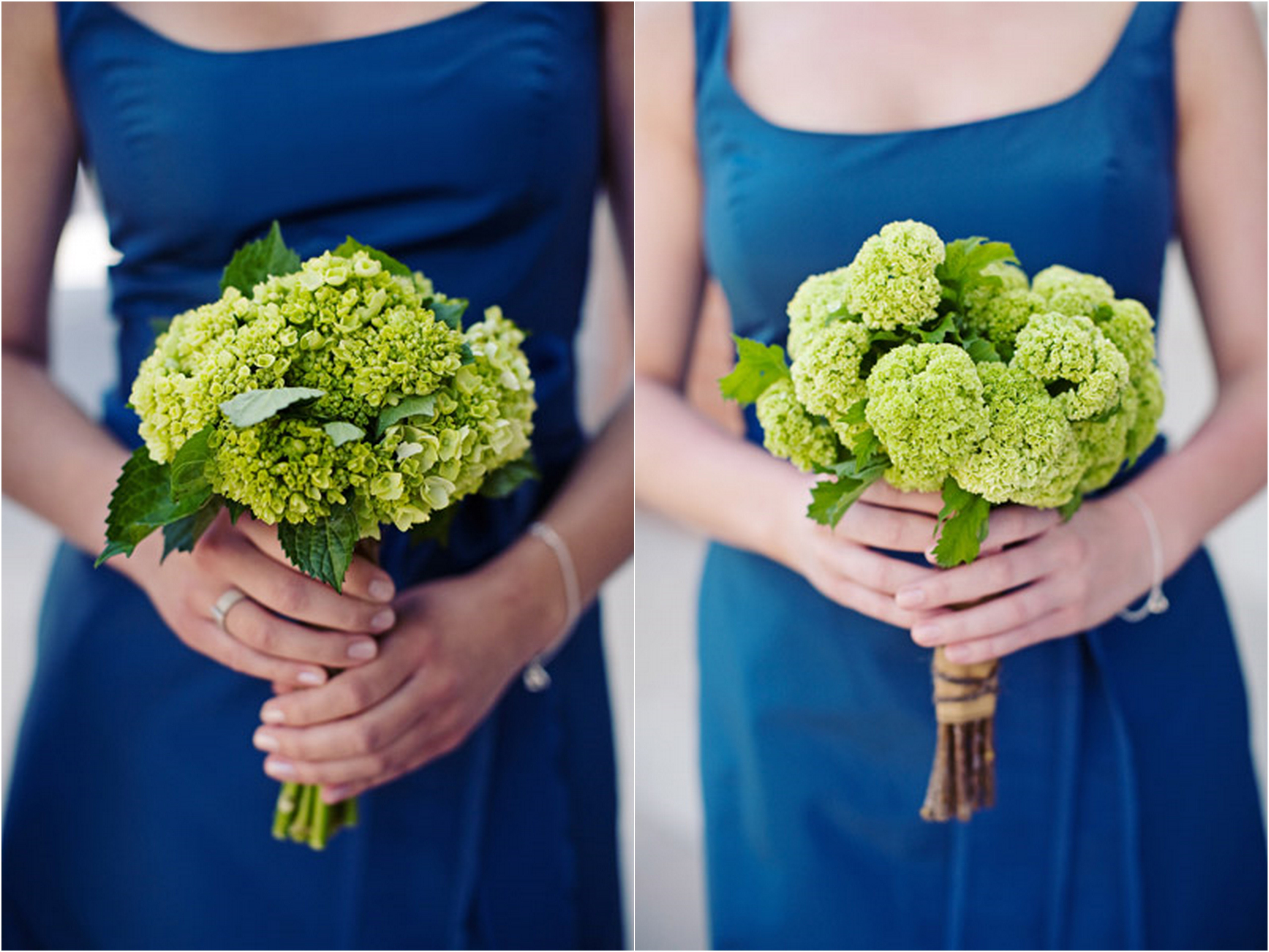 Each bridesmaid carried a different green theme flower in a celery or lime tone. The maid of honor had a combination of the different florals
