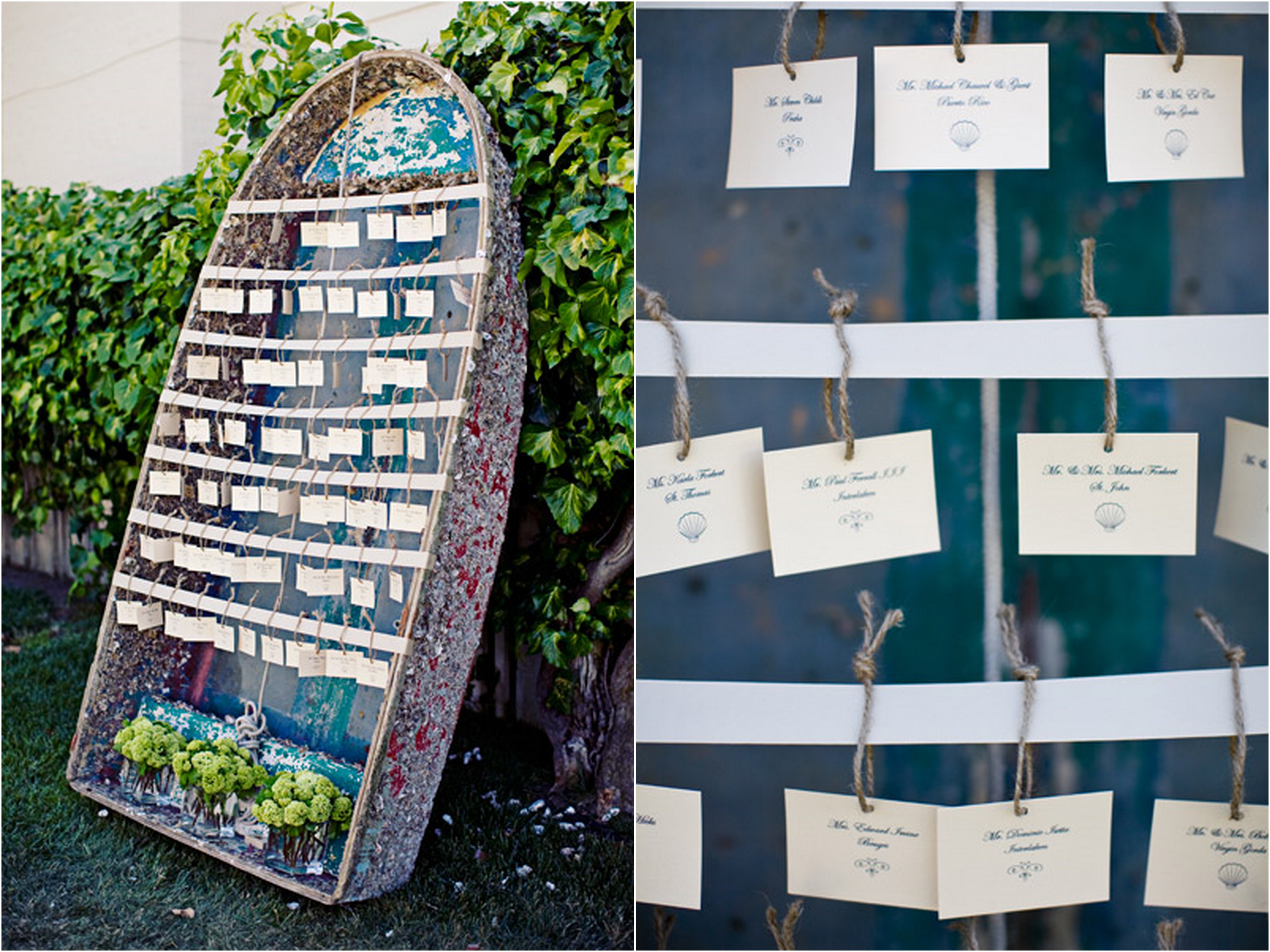 elements: grapewood branches, natural khaki linens, wood lounge furniture, dingy boat, sailing trophies, white lanterns