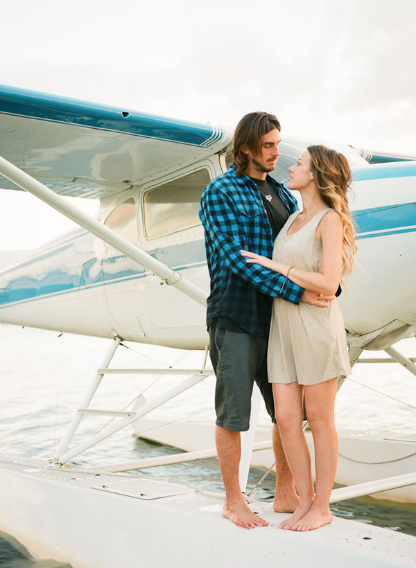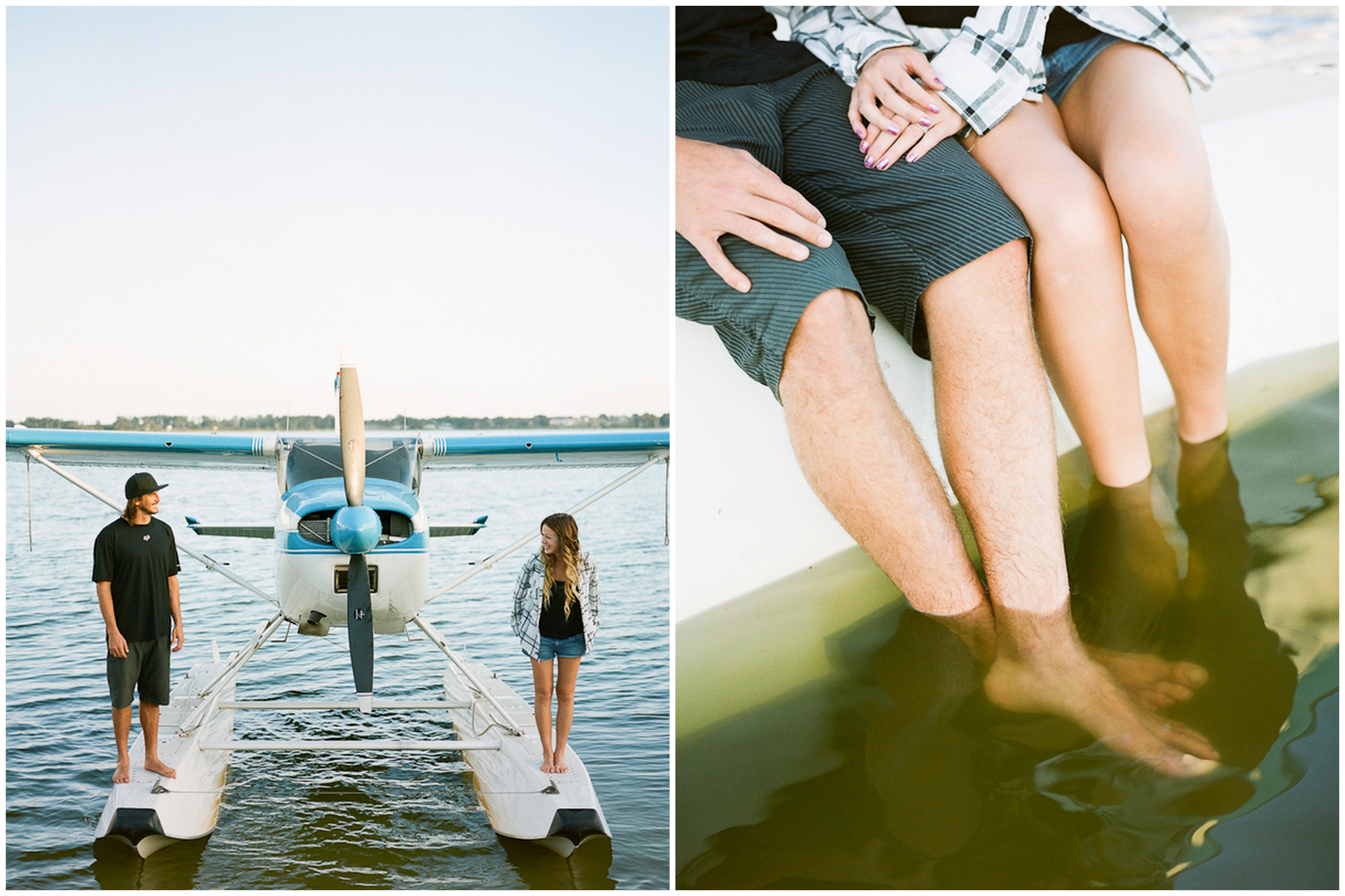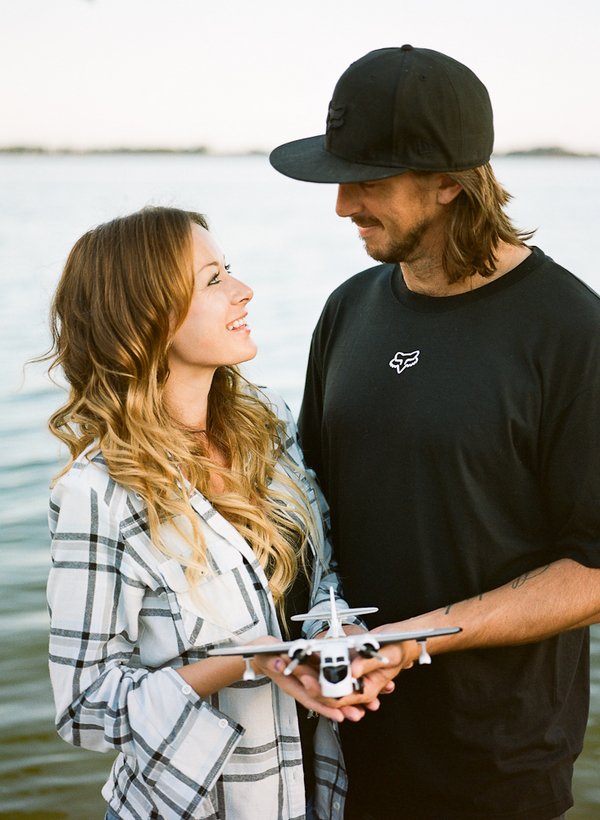Today we have a very special engagement session! This couple is adorable so we knew that anything they chose to do was going to be amazing! Victoria is a model and Dieter is a professional wake boarder sponsored by Fox so they chose to have their engagement session on the water in Florida because of their mutual love for the lake.  And how amazing is it that they incorporated a sea plane!? And then a canoe?!  I die! I absolutely love when couples decide to do something unique and meaningful to them!  Lucky for us, we get to enjoy the beautiful pictures, shot by Jana Morgan, that came from that! Love her tan dress, their laid back style, and the overall comfort of this shoot!
