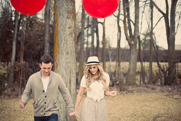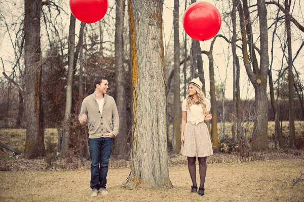 Gorgeous, gorgeous, gorgeous is this Utah engagement shoot with red balloons of the beautiful Meredith and Mark. Meredith also happens to be the cousin of my dear friend Jaime! Their style, the photography by Alixann Loosley, and the details are all breathtaking. Meredith and Mark also have a beautiful love story, Mark shares it below: