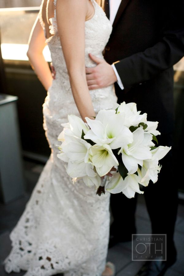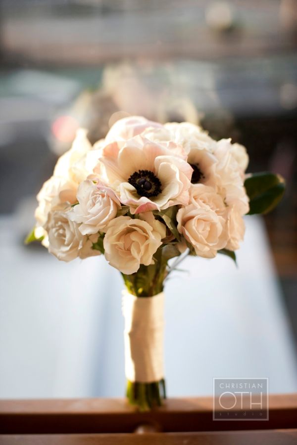 - Remember to use seasonal materials such as the white amaryllis I used for the bride’s bouquet and the anemones and camelia foliage.