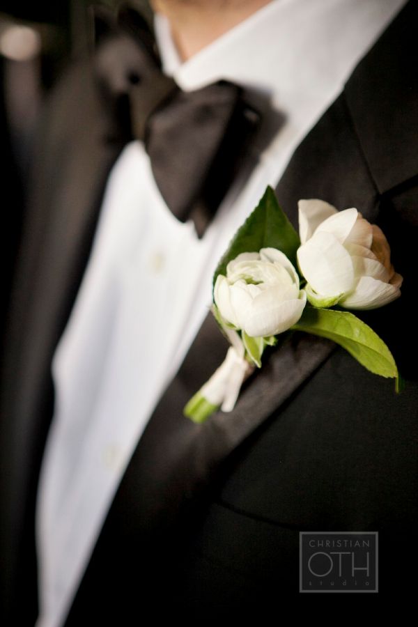 There are no words for this gleaming wedding by contributing editor and events designer, Matthew Robbins!! This gorgeous table setting was illuminated with soft tea light candles scattered all over and was balanced with twinkling lights hanging above. Matthew incorporated a black, white and green color palette with touches of pewter, grey and silver. We love the winter blooms in the bride’s bouquet and the table setting, which consisted of Amaryllis, Anemones, Camellia Foliage and Ranunculus! Doesn’t this look like the perfect and cozy winter wedding reception?!