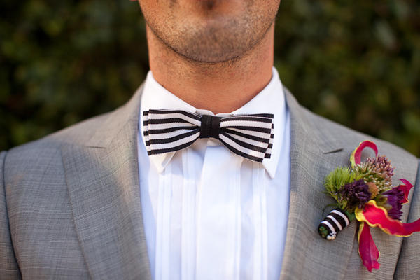 We love brides and grooms with unique style, and we think bow ties worn at weddings on grooms are so cute! We blogged one of our more colorful and fun weddings by Jesi Haack and Aaron Shintaku awhile back and they couple was all about the bowties (check it out here). We got so excited when we saw those we had to do a post just dedicated to BOWTIES! They can be worn in a formal setting or a more casual setting. The only tricky thing about them is tying them… be honest, how many of you can?! We’ve added a helpful guide below to help out. BUT most of you probably get the pre-tied ones? let us know!