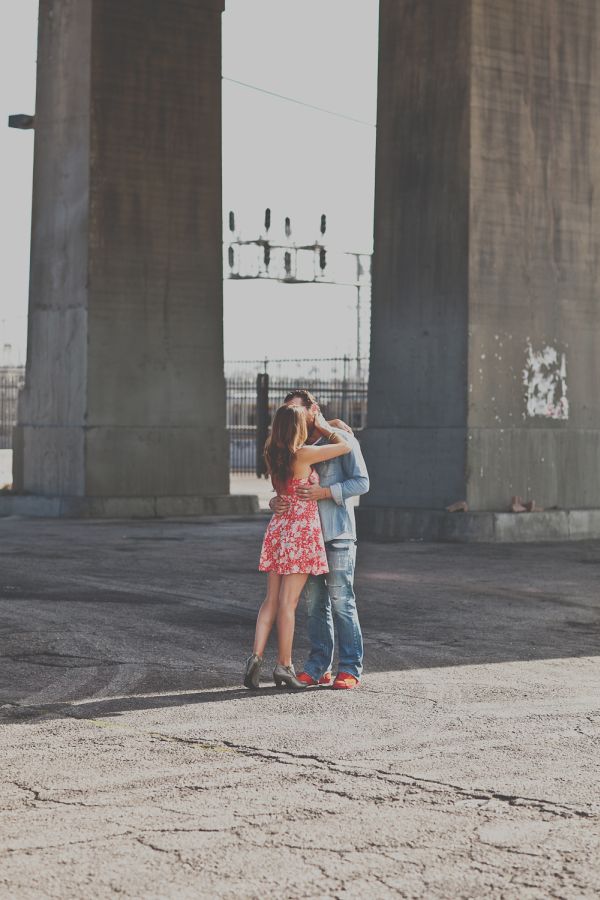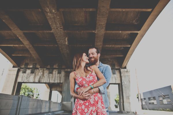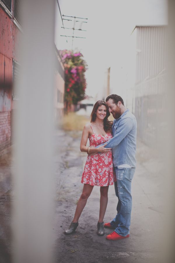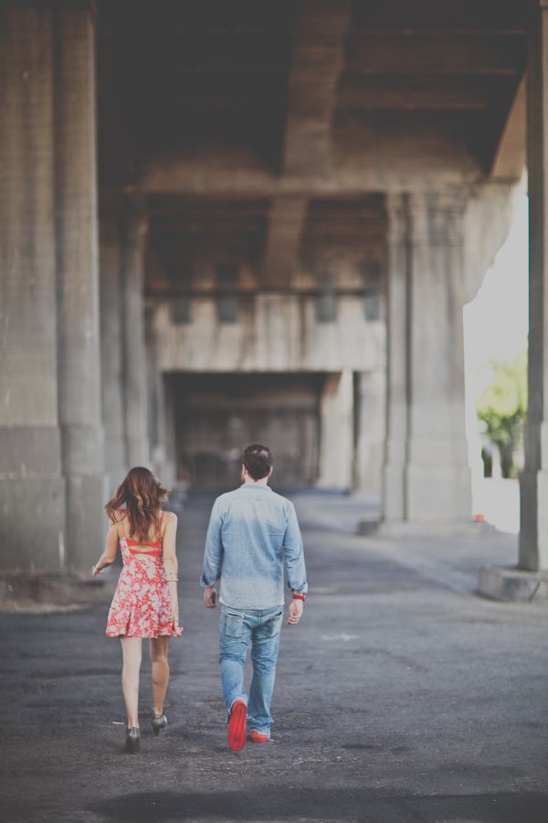 Fast-forward to this engagement session and the rest is history! Ryan Haack did an absolutely amazing job of capturing these two under this isolated underpass and empty alleyways. The old buildings and graffiti gave this shoot a raw and urban feel to it! It’s so carefree and natural… and so them! Between her red dress and his red sneakers, it’s obvious this pair is so fun and so original. We are obsessed and we love them both!