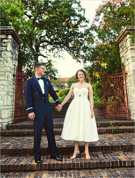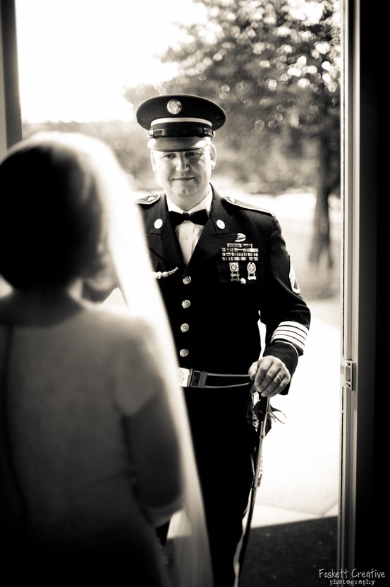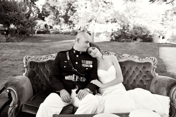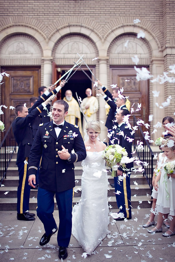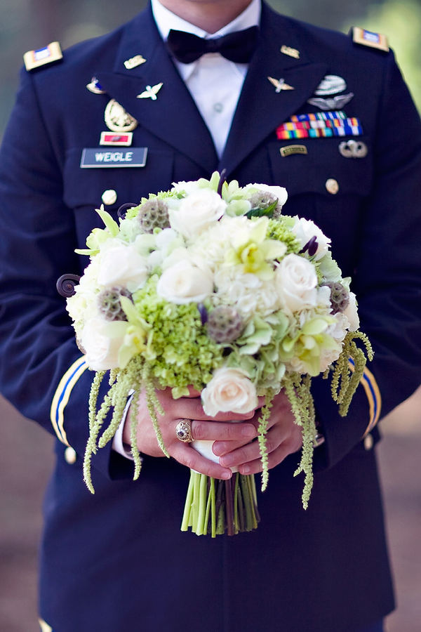 Today, Veteran’s Day, we want to take a moment to thank all the men and women who have served and are currently serving our country. We are so blessed to live in a free country because of the selfless and courageous veterans of the United States military! Between our Be Inspired team member Ashley‘s brother being deployed with the 578th Battalion (keep them in prayer!) and our involvement with Operation Gratitude, I have always been inspired by these brave Americans and today is no different. You might remember the posts we have done in the past about providing wedding magazines to the troops as well as some great 4th of July inspiration. We have another military inspired post today, this time about those hunky grooms in uniform! There’s really nothing quite like a man in uniform and especially on a wedding day! We hope you all are enjoying your day off of work and take the time to remember the reason behind it!
