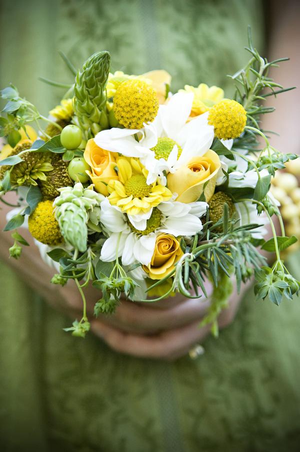 For the bouquets I wanted yellow and white flowers with lots of herbs for the greenery