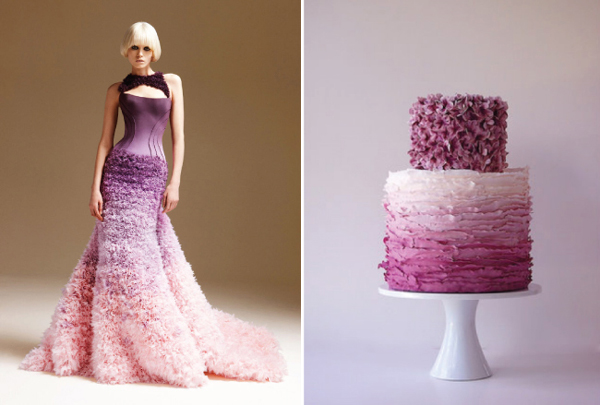 I love color in weddings and I love seeing color used in unique and fun ways! Ombre has lately been one of my favorite ways to use color. Corntie from Canvas and Canopy first got me into it. Ombre is when a color is shaded from light to dark or dark to light. You can use ombre just as you would use any color. It adds a touch of fun and excitement with out going too over the top and it adds a almost a sherbet color palate! Looks delicious, right?  Check our our favorite ombre stationery, cakes, flowers, dresses, nails and hair and ombre wedding details!