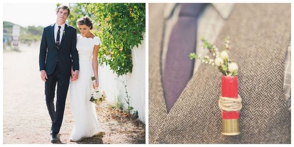 [scalloped neckline wedding dress// shotgun boutonniere]