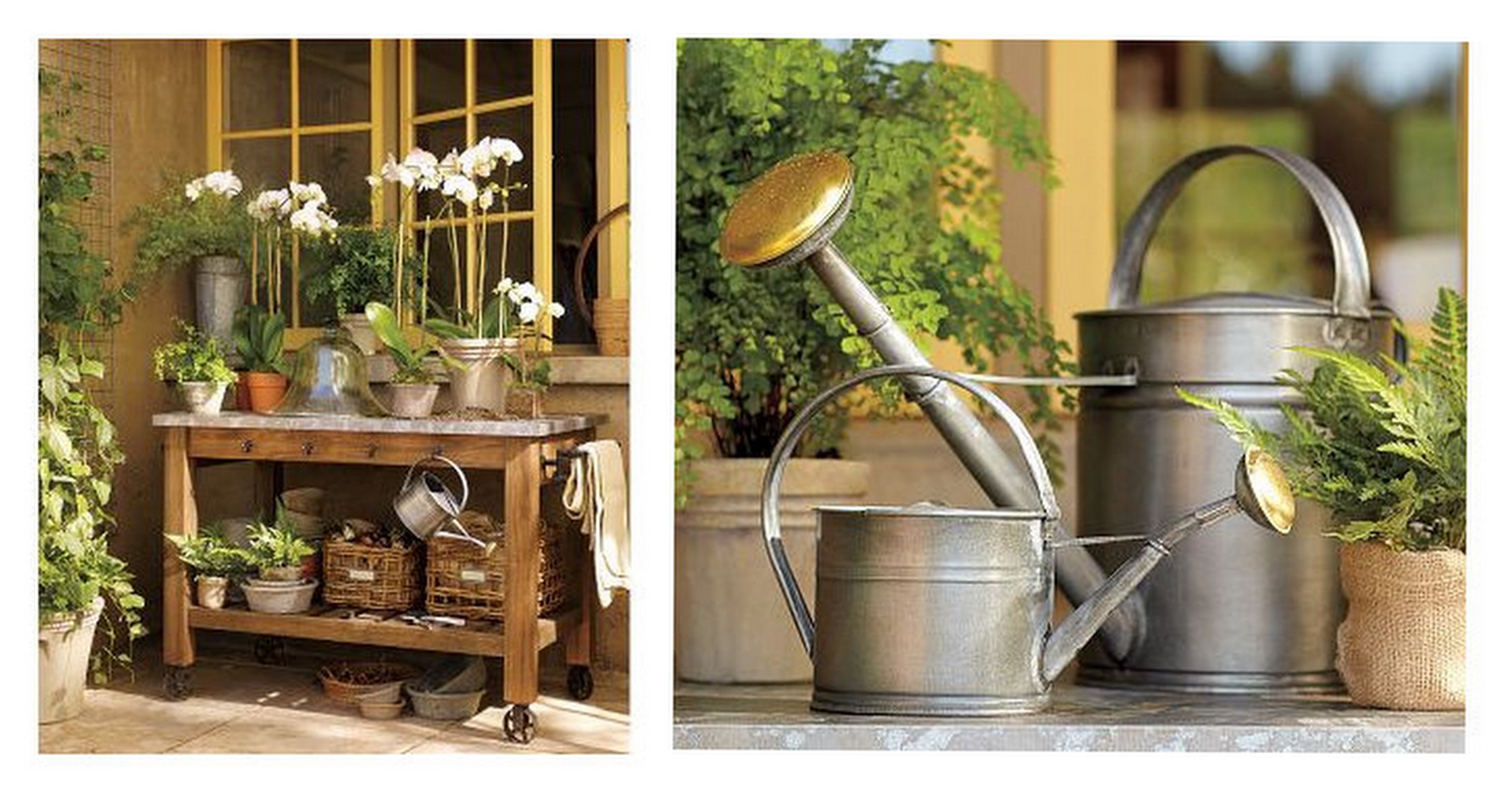 Abbot Zinc Top Island, Galvanized Metal Watering Cans