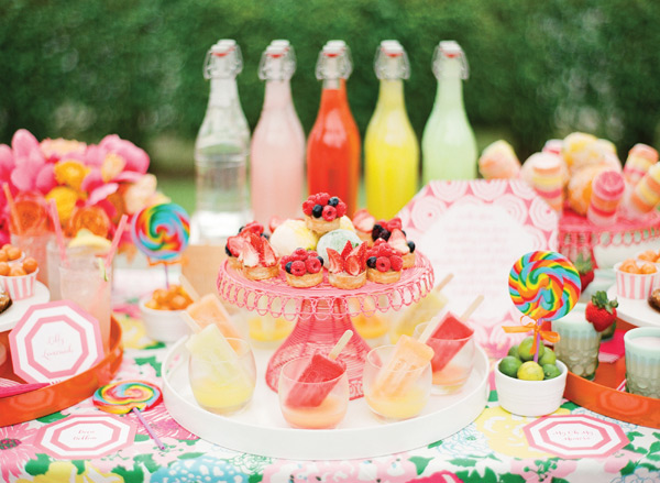 Love this colorful dessert table! Check out how they used swirly lollipops to add some creativity to the table!